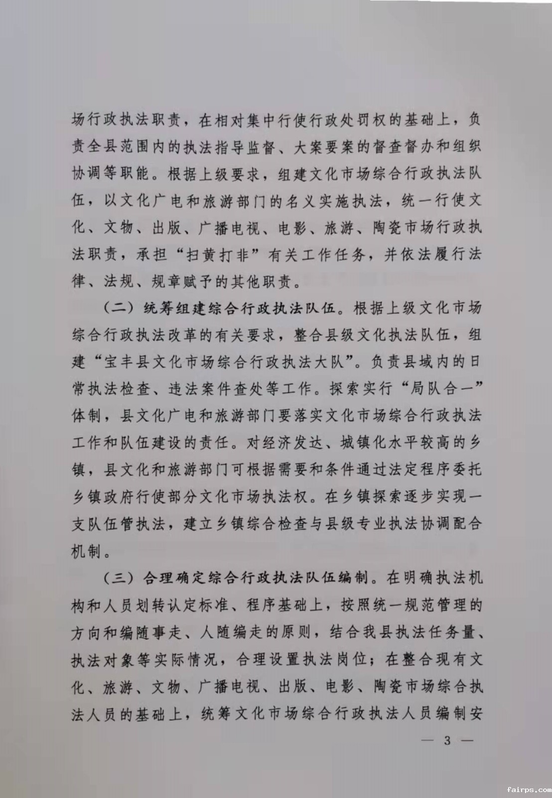宝丰县文化市场综合行政执法大队机构编制方案公示