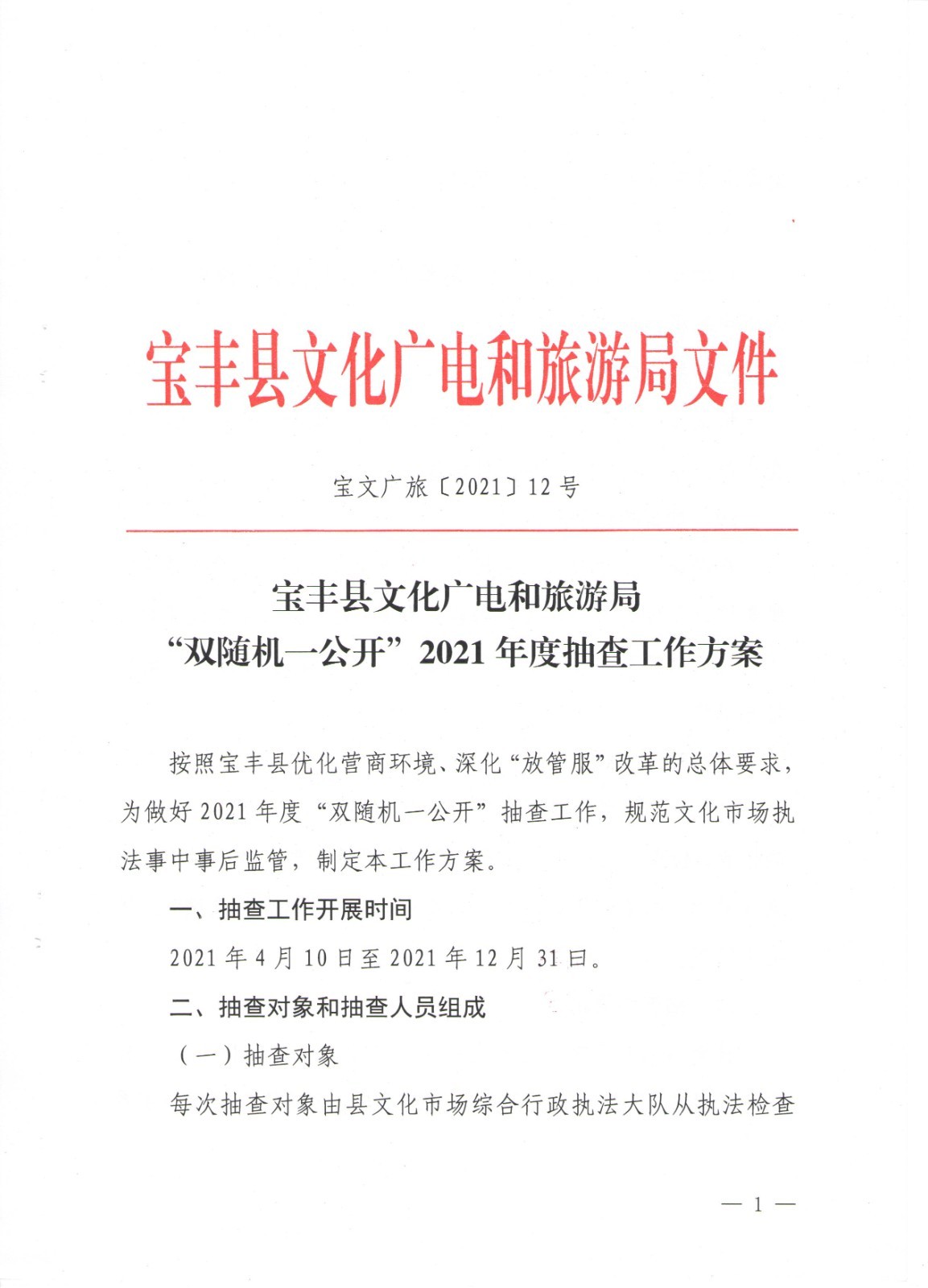双随机一公开,抽查工作方案.pdf