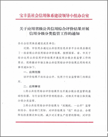 关于应用省级公共信用综合评价结果开展信用分级分类监管工作的通知
